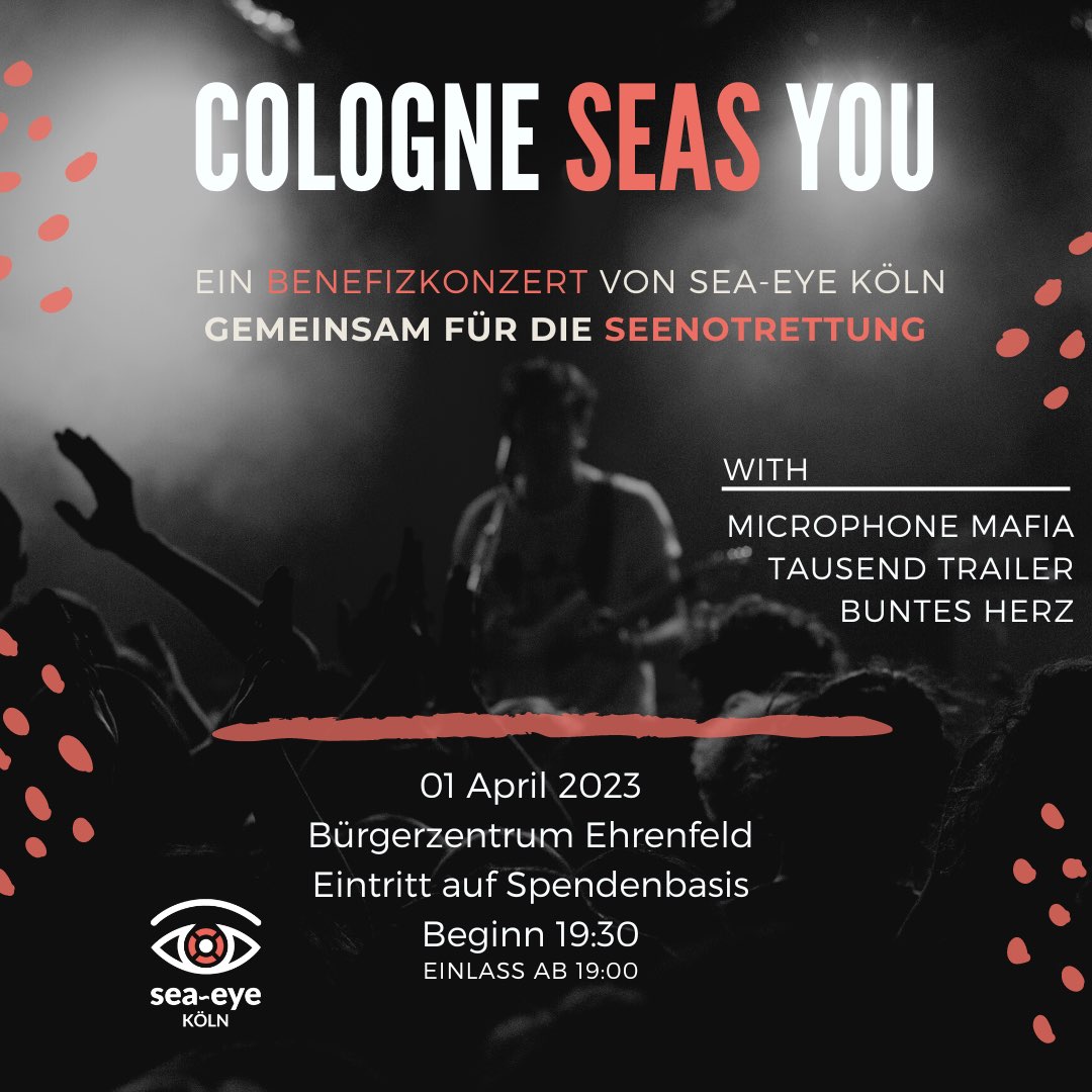 Unter dem Motto #CologneSeasYou veranstaltet die Organisation "SeaEye Köln" am 1. April 2023 ihr erstes Soli-Konzert!