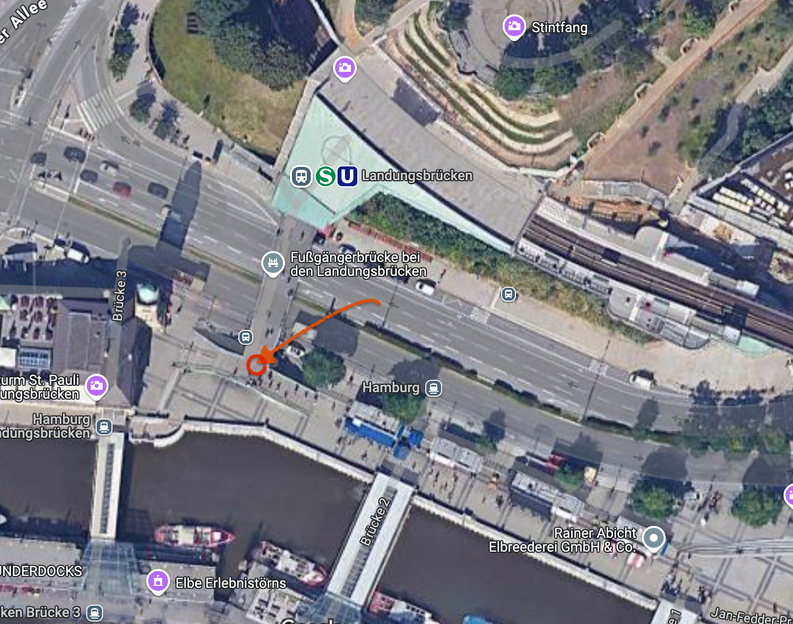 Treffpunkt: oben auf der U-Bahn Brücke am Treppenaufgang, wenn man Landungsbrücken aussteigt