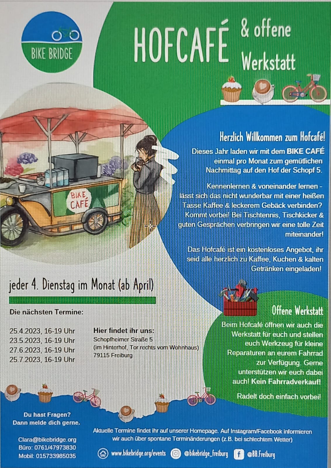 Hfcafé findet am 27.06, den Dienstag um 16-19 Uhr statt! Wir organisieren dieses Event mit Bike Bridge