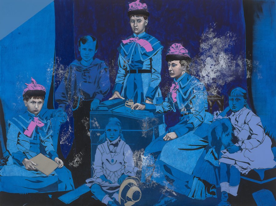 Er malt vor allem Figuren, oft mit vielen Farben. Dabei lässt er sich von historischen Fotografien inspirieren.