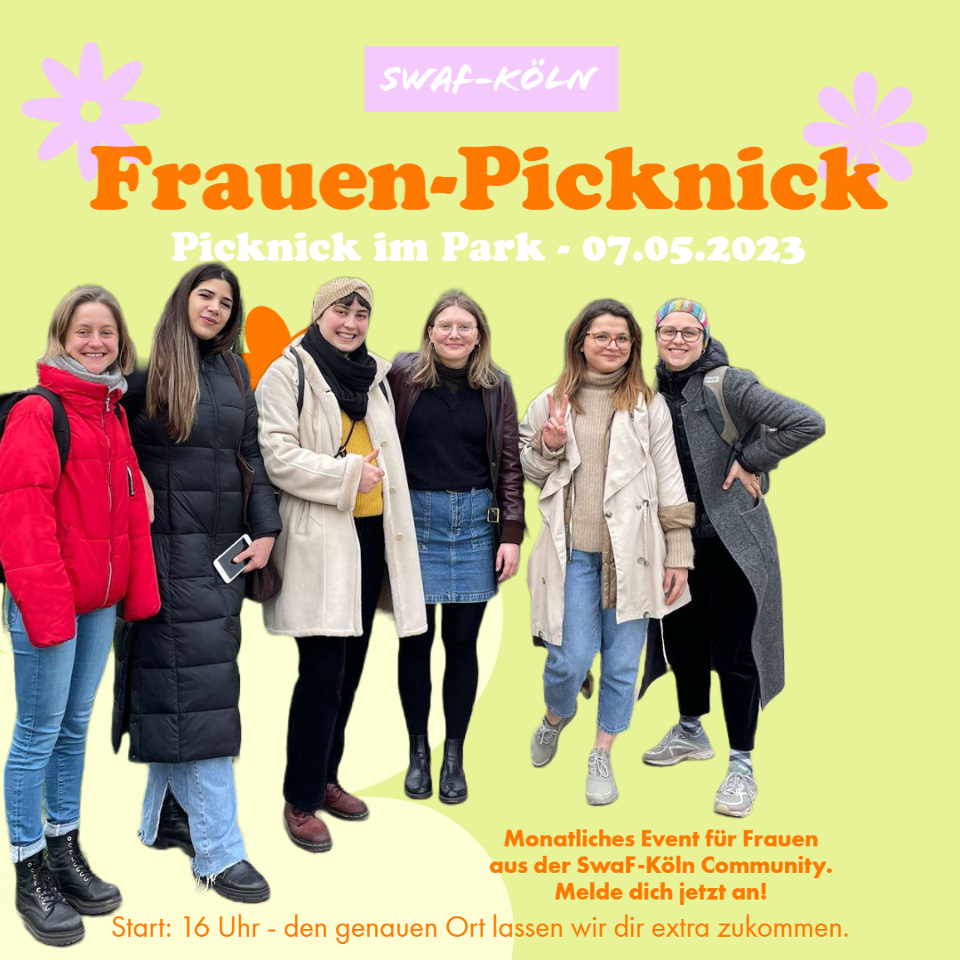 TERMINVERSCHIEBUNG: DAS PICKNICK FINDET AM 14.05. STATT !! Wir wollen alle SwaF-Frauen am Sonntag um 16:00 zu einem Picknick im Park einladen. ☀️☘️🌻