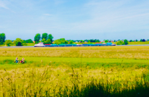Wir fahren mit dem Fahrrad am Rhein entlang bis nach Kaiserswerth.