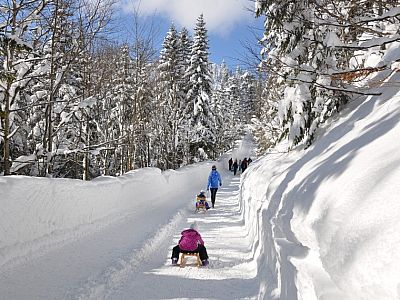 Danach fahren wir mit dem Rodel nach unten 🛷