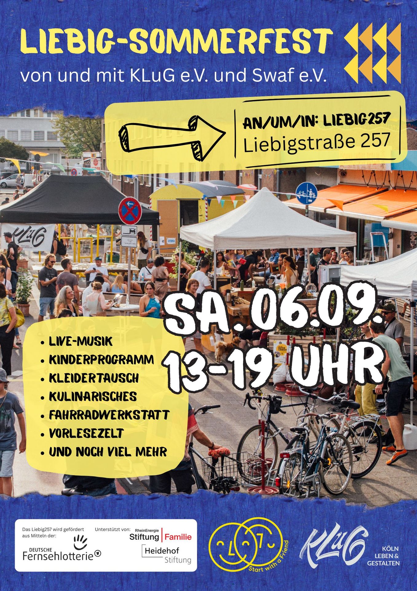 Tag der Freundschaft! Im 9. Jahr nach SwaF-Gründung in Köln feiern wir unser Sommerfest mit unseren Kooperationspartner*innen vom Klug e.V. im Liebig257. IM LIEBIG? Ja. 🥳 Und es ist gar nicht so klein, wie es aussieht.