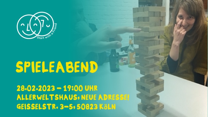 "Du spielst gerne Brett- und Kartenspiele? Und du lernst gerne neue Leute kennen? Dann könnte der Spieleabend im Allerweltshaus das Richtige für dich sein! Besonders Menschen aus anderen Ländern, die Deutsch lernen möchten und neue Kontakte suchen, sind herzlich willkommen. Wir sind eine offene Runde und jeder Mensch unabhängig seiner Herkunft, Geschlecht, sexuellen Orientierung, Behinderung gehört für uns als Mitspieler*in dazu.