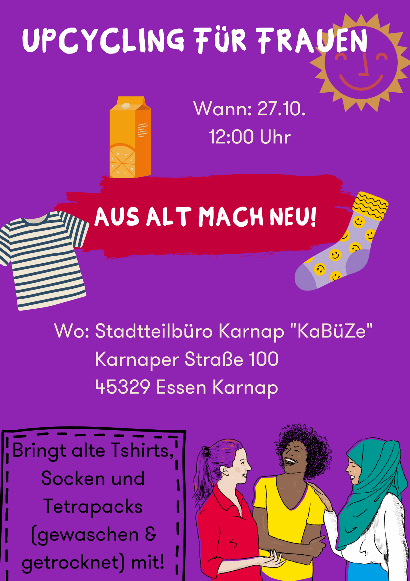 Wo & Wann: Am 27.10 von 12 Uhr bis ca. 15 Uhr. Im Stadtteilbüro Karnap "KaBüZe"